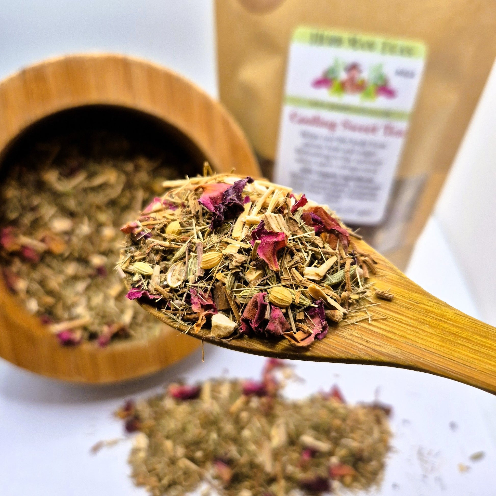 Cooling Sweet Tea is a refreshing herbal blend crafted to relieve excess heat in the body and emotional tension in the mind. It’s ideal during summer months or for individuals with high Pitta (heat) who struggle with irritability, skin inflammation, or overheating.